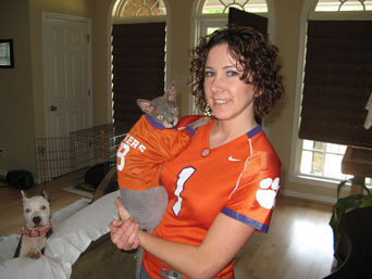 Nicole and "Roo" with friend "Noodles" getting ready for the
