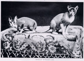 Much to the surprise of many, the hairless cat is not a "man-made" breed. They are a natural mutation. The beginning of the Sphynx as we know it today began almost forty years ago in Toronto, Canada. Although, hairless cats have actually been reported as far back as the early 1930's. In 1966, there was a hairless kitten born to a farm cat and it was discovered to be a natural mutation. |
